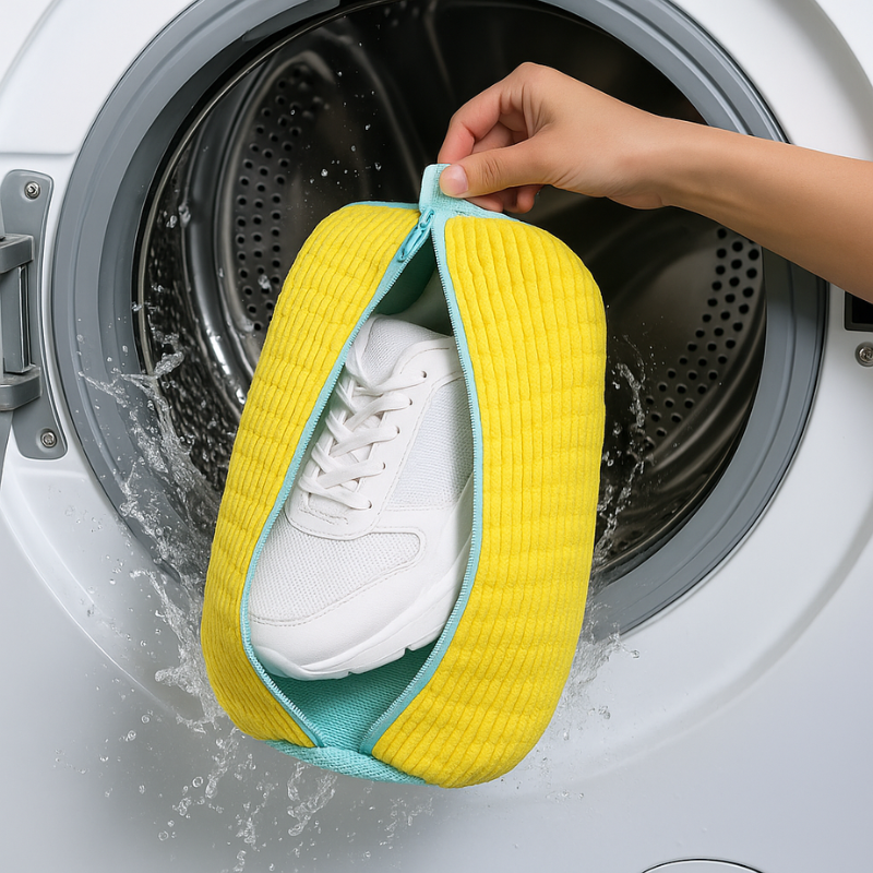 Découvrez SneakWash™ – le sac qui protège vos sneakers à chaque lavage. Retrouvez le plaisir d’avoir des baskets propres, intactes et sans aucun stress.